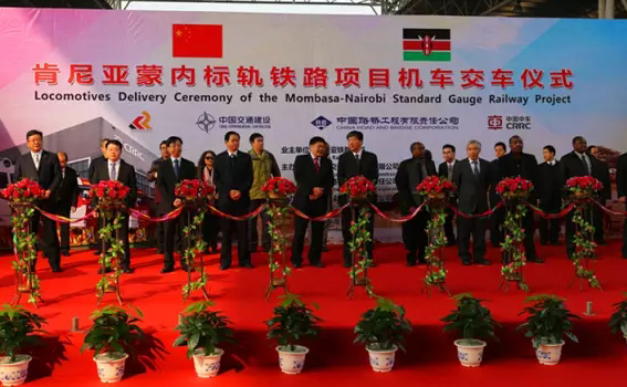 肯方監(jiān)理公司董事長(zhǎng)馬圖、肯尼亞鐵路公司機(jī)車經(jīng)理戴維、肯尼亞監(jiān)理總經(jīng)理詹姆斯、中國(guó)中車副總裁余衛(wèi)平、中國(guó)路橋總工程師孫耀國(guó)、中車國(guó)際事業(yè)部副總經(jīng)理戰(zhàn)宇宙出席機(jī)車交付剪彩儀式。