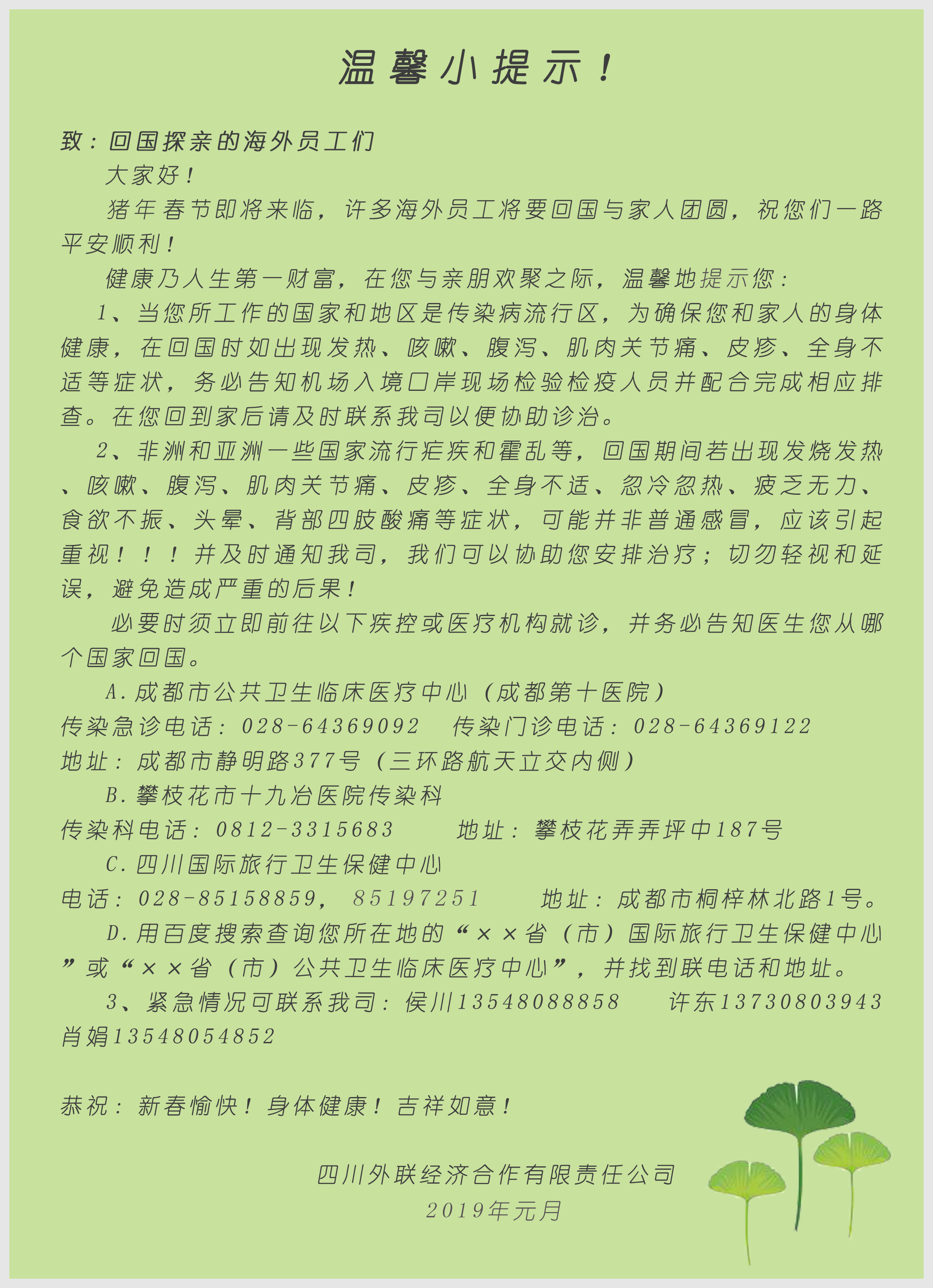 回國探親溫馨提示!