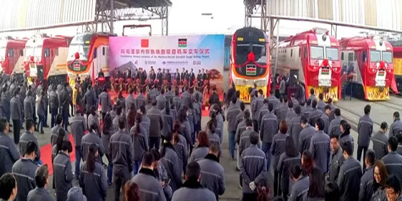 2016年12月16日,中車戚墅堰公司56臺(tái)出口肯尼亞內(nèi)燃機(jī)車項(xiàng)目首批12臺(tái)交付??夏醽嗚F路公司、中國(guó)路橋工程有限責(zé)任公司、中車股份公司相關(guān)人士,共同為交付機(jī)車剪彩。
